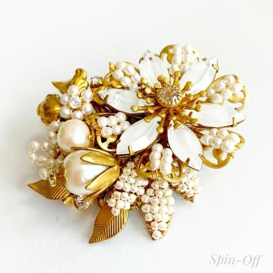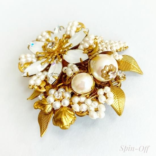 レアなホワイトギブレのスワロフスキーをメインにヴィンテージ色パーツとの組み合わせ。