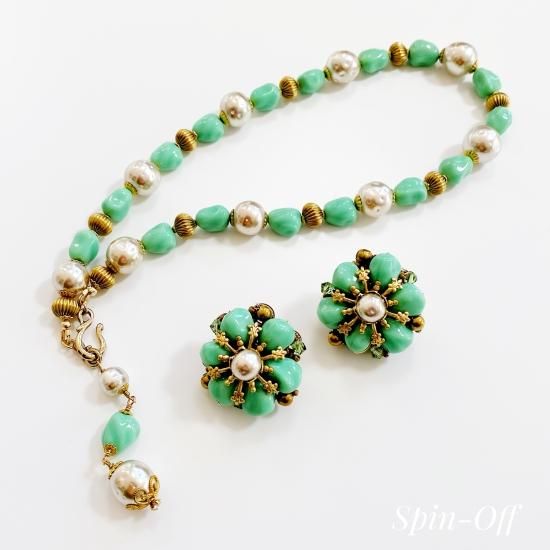 ジャパンヴィンテージパール、仏ヴィンテージビーズ、スワロフスキー社クリスタルガラス、真鍮パーツ(現行)