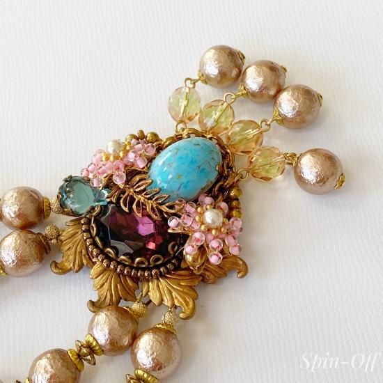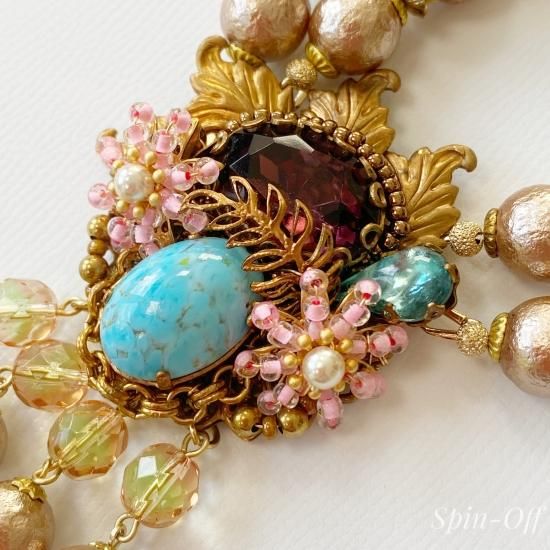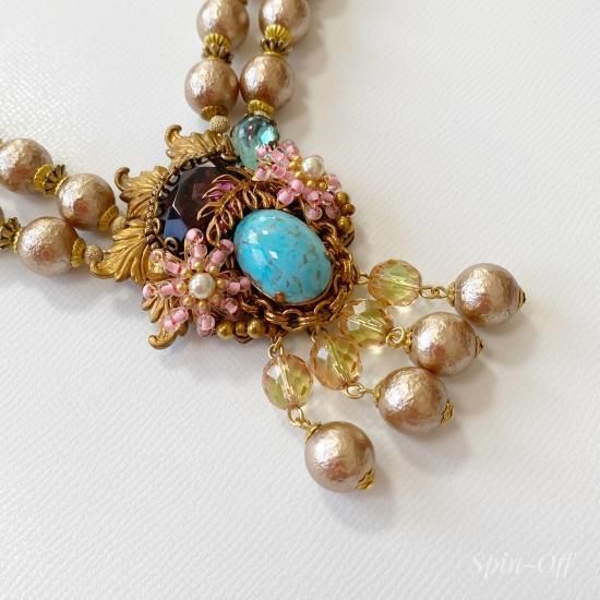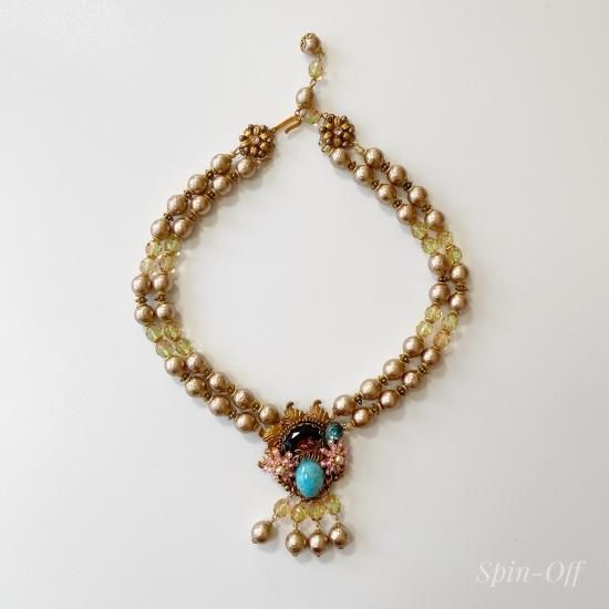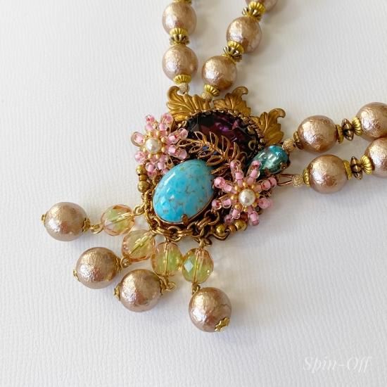 チェコヴィンテージパール(1950年代)、ウランガラス(チェコデットストック)、チェコヴィンテージカボッション、ヴィンテージ真鍮パーツ