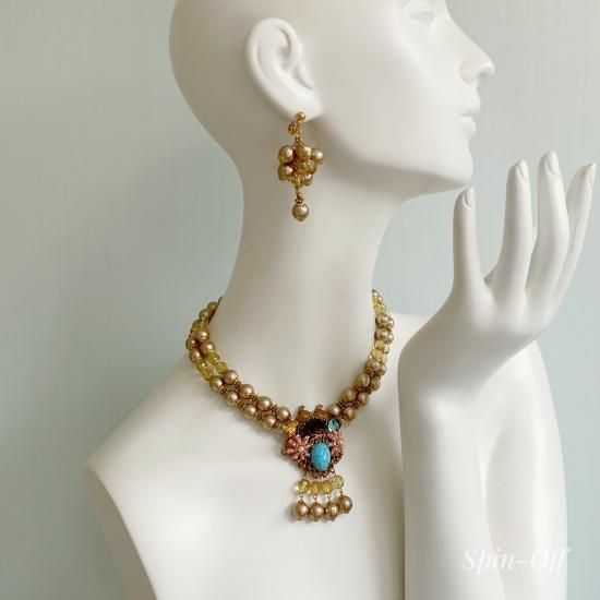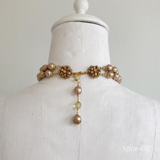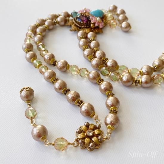 ベージュ系パールとウランガラスビーズの組み合わせ。