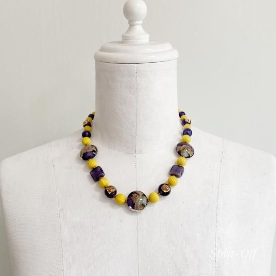 <ヴェネチアンビーズとアメジストが魅力的な和のネックレス>