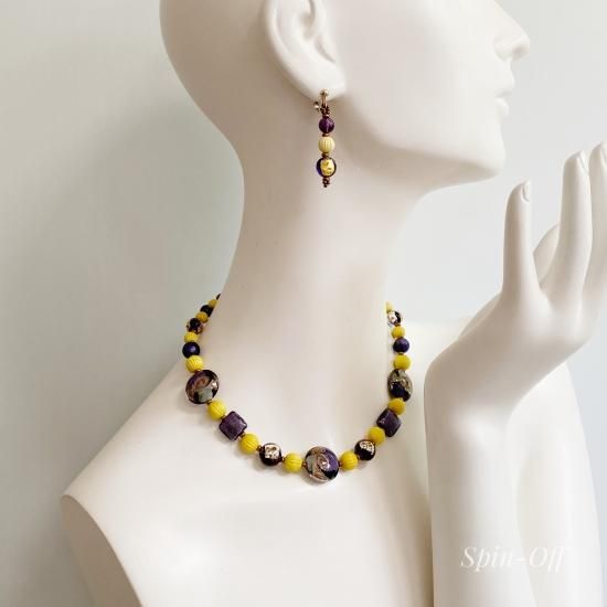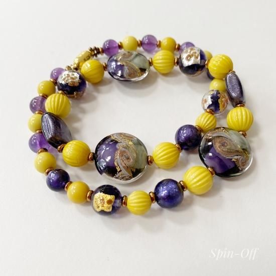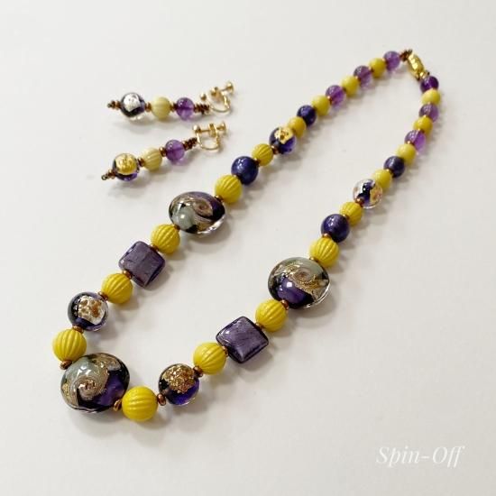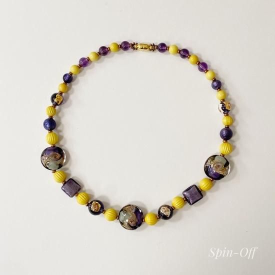 和のイメージを基にデザインされたネックレスは、ヴェネチアンビーズとアメジストが美しく融合しています。