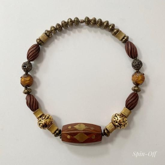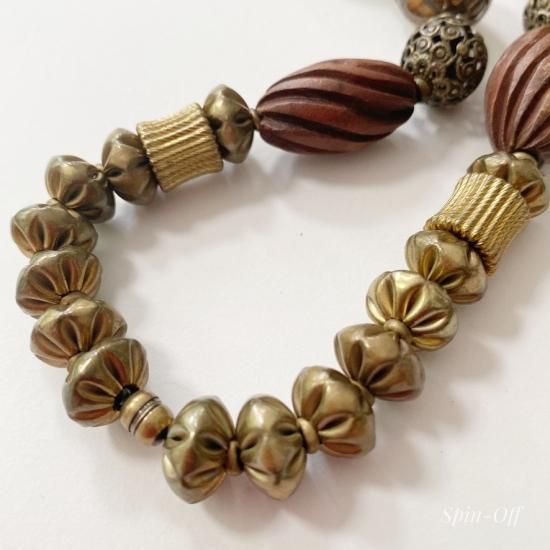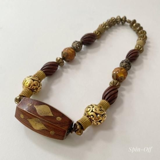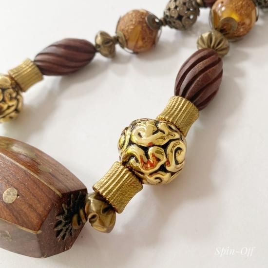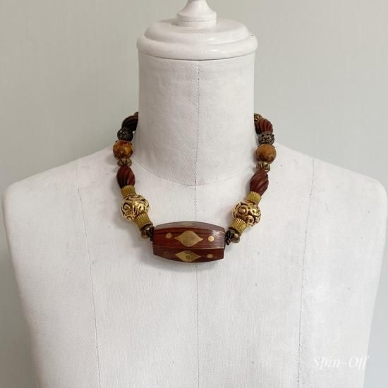 ヴィンテージビーズとウッドビーズが織り成す、存在感ある軽めのネックレス。