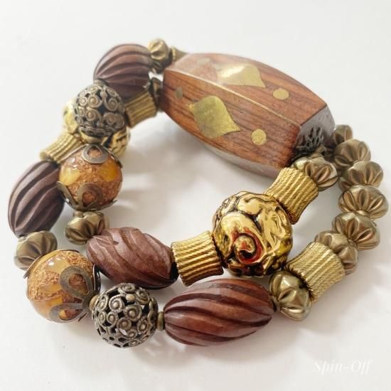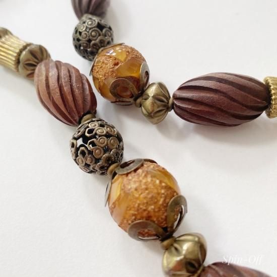 ヴィンテージビーズとウッドビーズを組み合わせたデザインは、一歩先行くスタイルを演出すること間違いなしです。