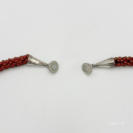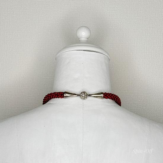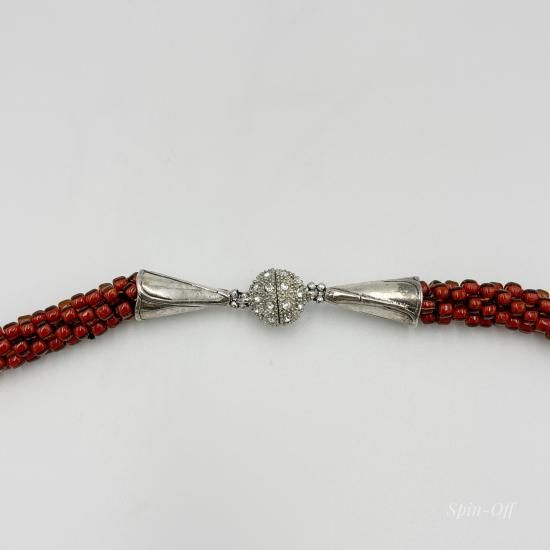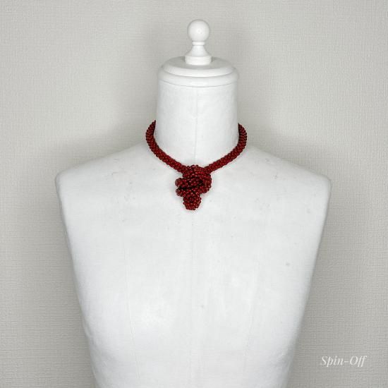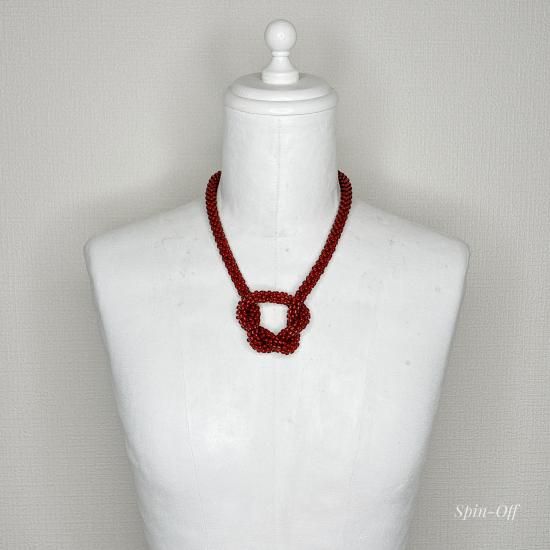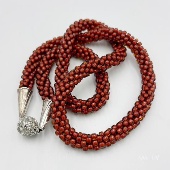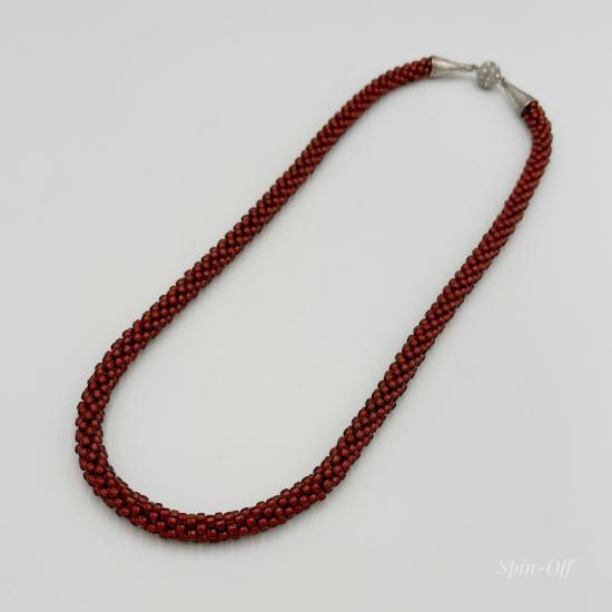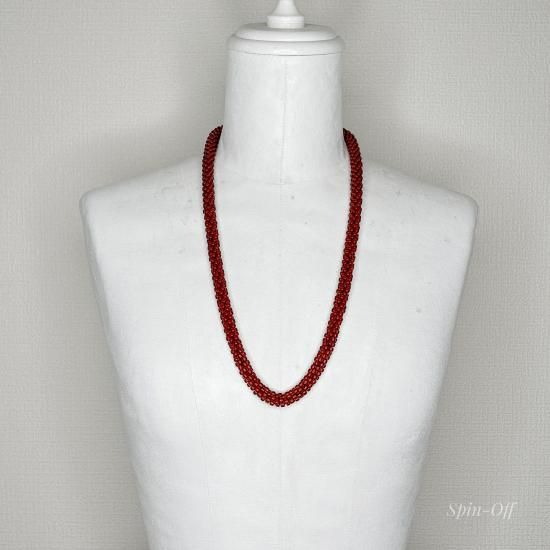 茶赤のシードビーズ(マツノ)を編み上げてロングネックレスに。