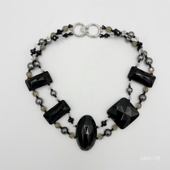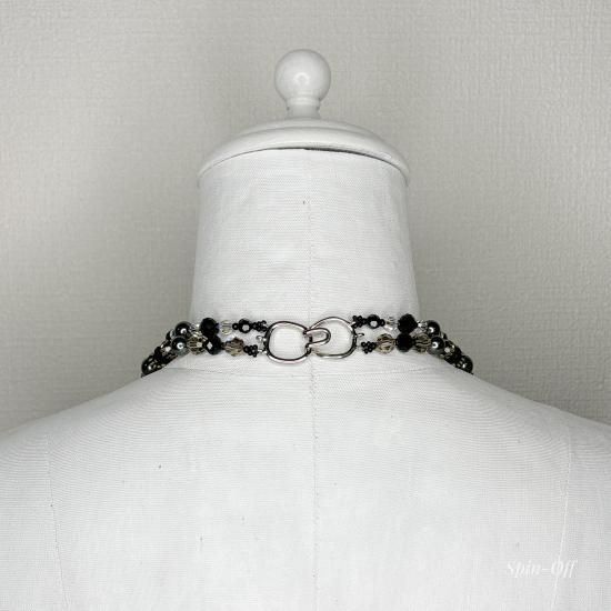 フランスで購入のガラスパーツとスワロフスキーで通し仕上げたオンリーワンのネックレス。
